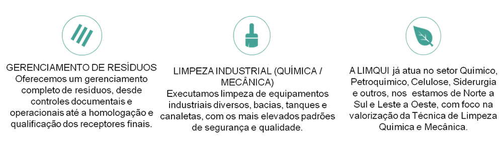 A LIMQUI tem abrangência nacional e hoje atua em todos os estados do pais com desenvolvimento Industrial, prestando uma gama de serviços na área da engenharia Química e Petroquímica, Celulose, Termoelétrica, Siderurgia e de Bens de Consumo